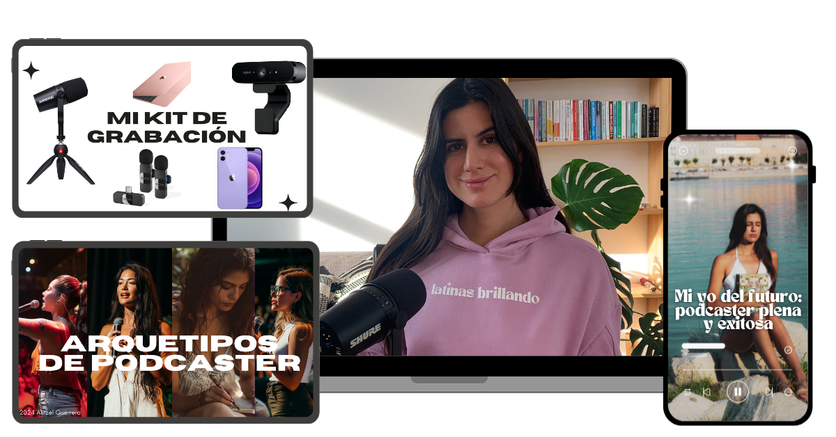 Crearás tu primer episodio y aprenderás a publicarlo. Te mostraré la forma simple (pero profesional) en la que grabo mi podcast Latinas Brillando.